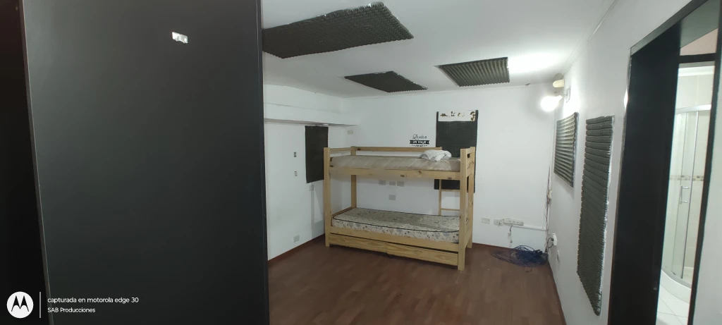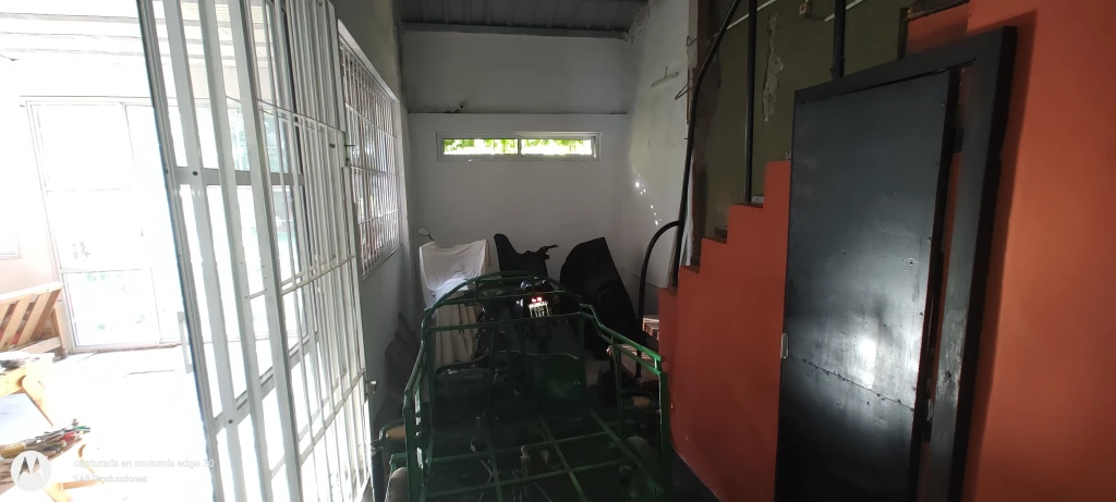 Escalera que conduce a un amplio espacio tipo gimnasio / salón multiuso, de aproximadamente 15 x 7 metros, que en su momento funcionó como un dojo de artes marciales de gran reconocimiento en la ciudad de La Plata, conservando aún diplomas, copas y premios que dan cuenta de su historia.