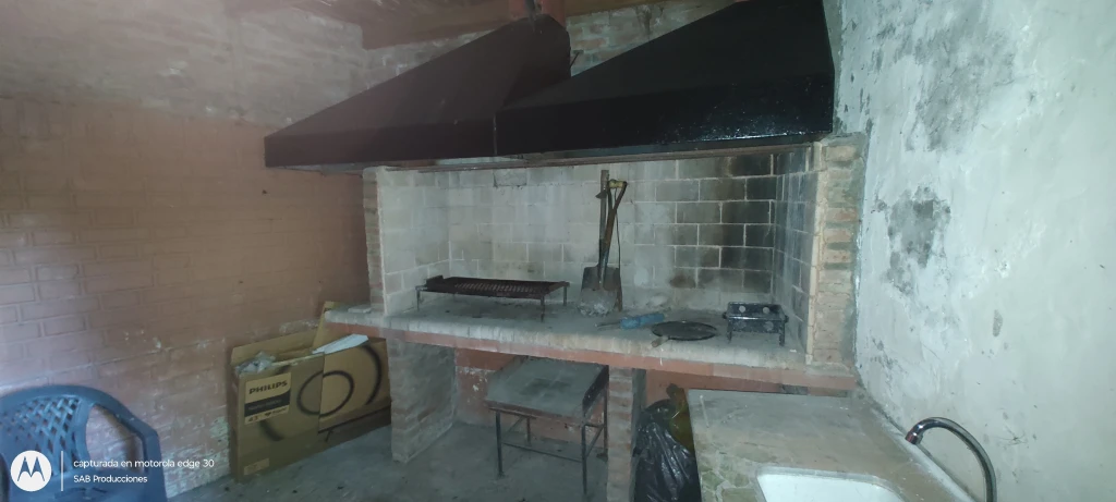 Gran quincho al fondo, de aproximadamente 10 x 4 metros, con parrilla, ideal para reuniones sociales y familiares.