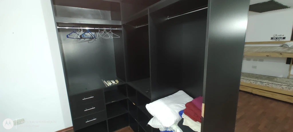 capacidad para cuatro vehículos en línea, con espacio sobrante para circulación y guardado.